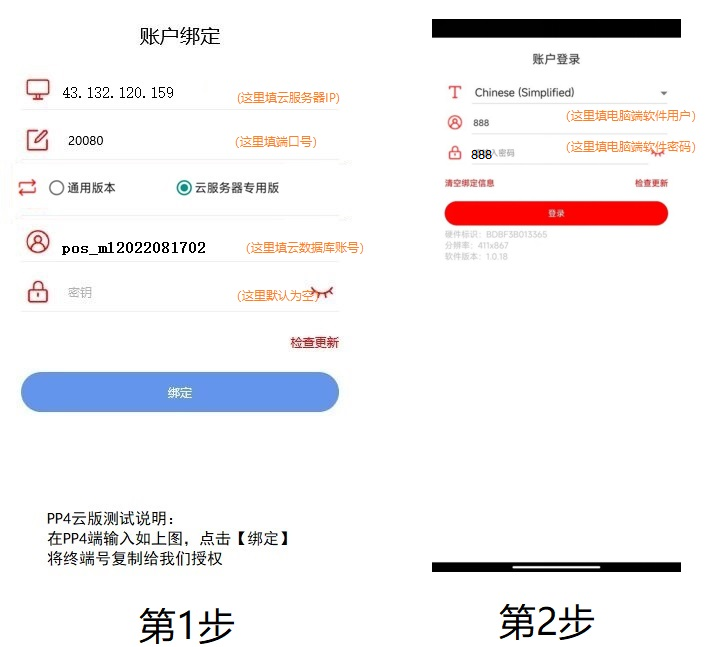 6.登陆PP4,点击【绑定信息】--填入数据库IP地址(若在局域网内使用,填入装了数据库的主电脑的IP地址即可)
